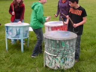 Durée de la fabrication de un à trois tambours avec initiation à un rythme Brésilien : une journée avec un ou plusieurs groupes composés de 6 à 10 personnes .