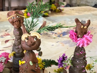 avec des argiles de différentes couleurs des plantes, graines,minéraux...
