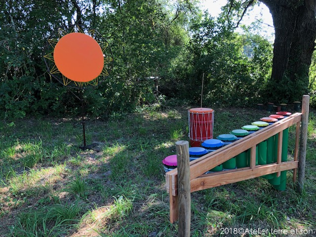 Les sculptures sonores argilophone créés avec les enfants du centre de loisirs .